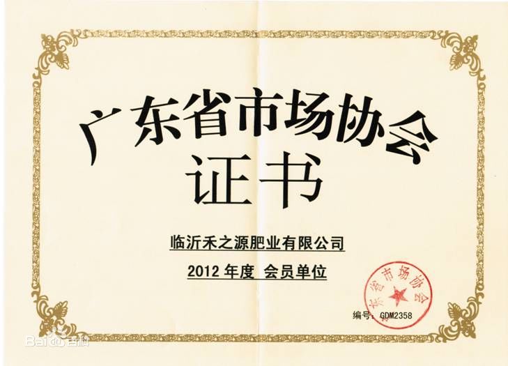 廣東(dōng)省市(sh≤€ ≠ì)場(chǎng)協會(huì)證書(shū)